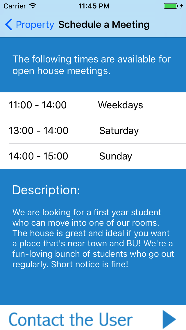 Studacom is an iOS location-based app that enables university students to find accommodation. You can post, access and inspect offers on a live database. You can get a single room or, with a group of friends, a whole flat or house to share. You can find properties offered within a particular area, using a GPS map or search criteria. Students, as well as owners and estate agents, can post offers. Studacom’s services, currently aimed at BU/AUB students, are set to expand. Studacom can make your life easier and enhance your student experience.